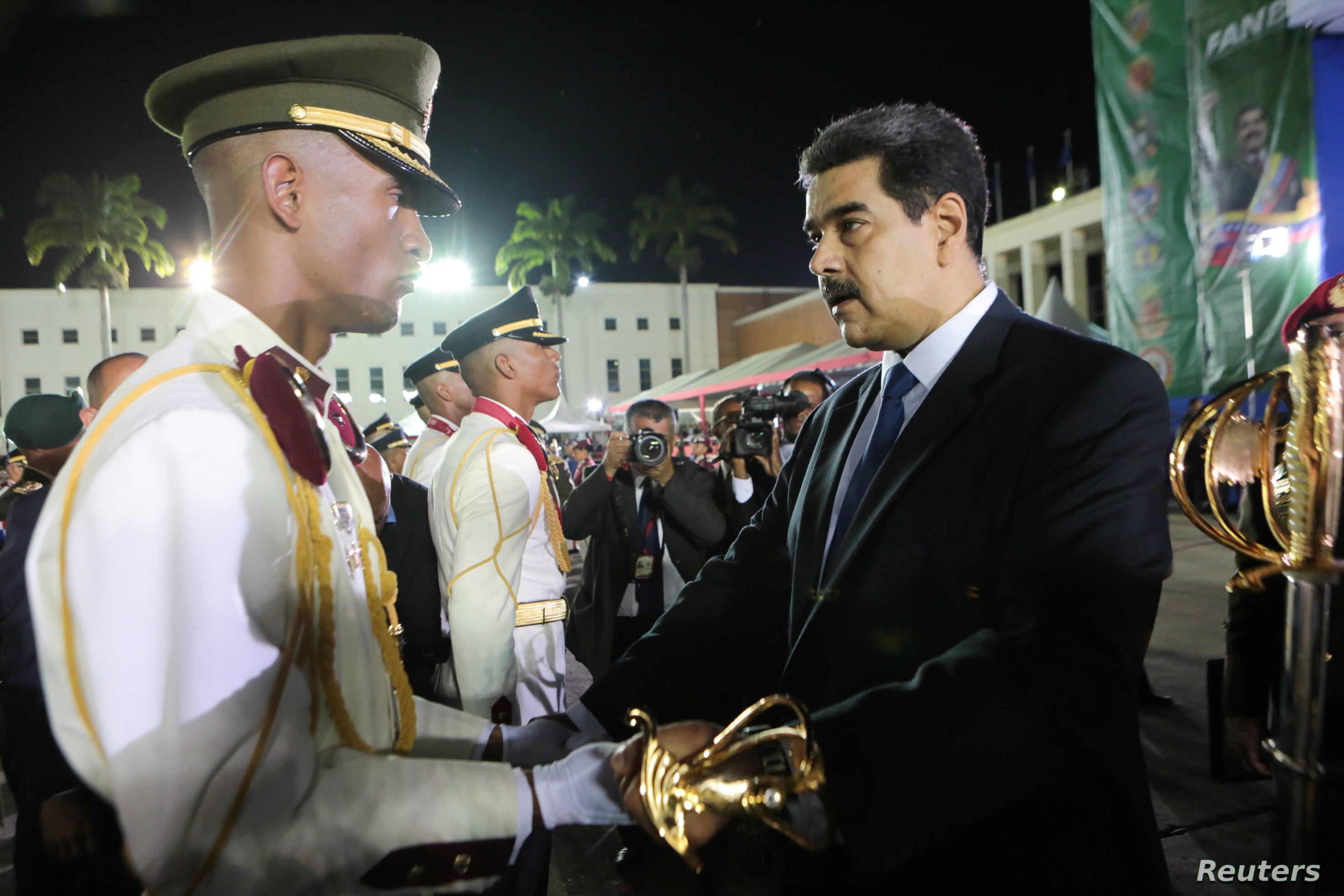 FILE – Venezuela’s President Nicolas Maduro takes part in a military graduation ceremony in Caracas, July 8, 2019.