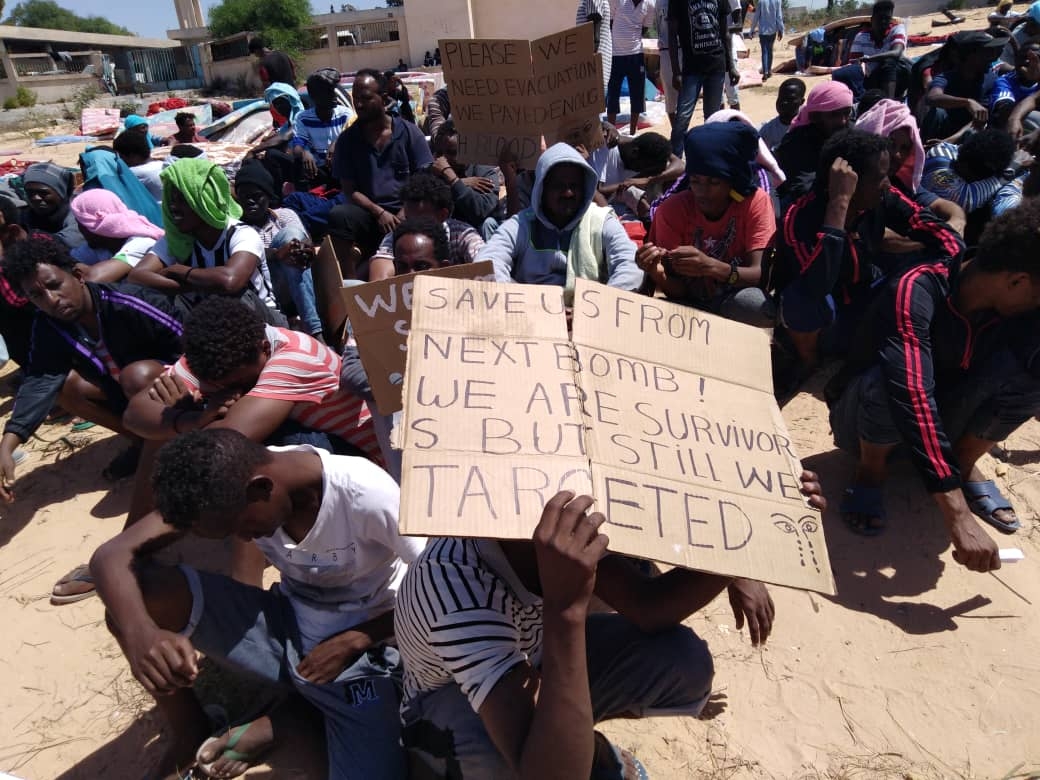 “We don’t need to eat,” said a young man held in a Libyan detention center five days after the compound was bombed killing more than 50 people and injuring at least 130. “We didn’t touch the food. We need to be out of Libya.”